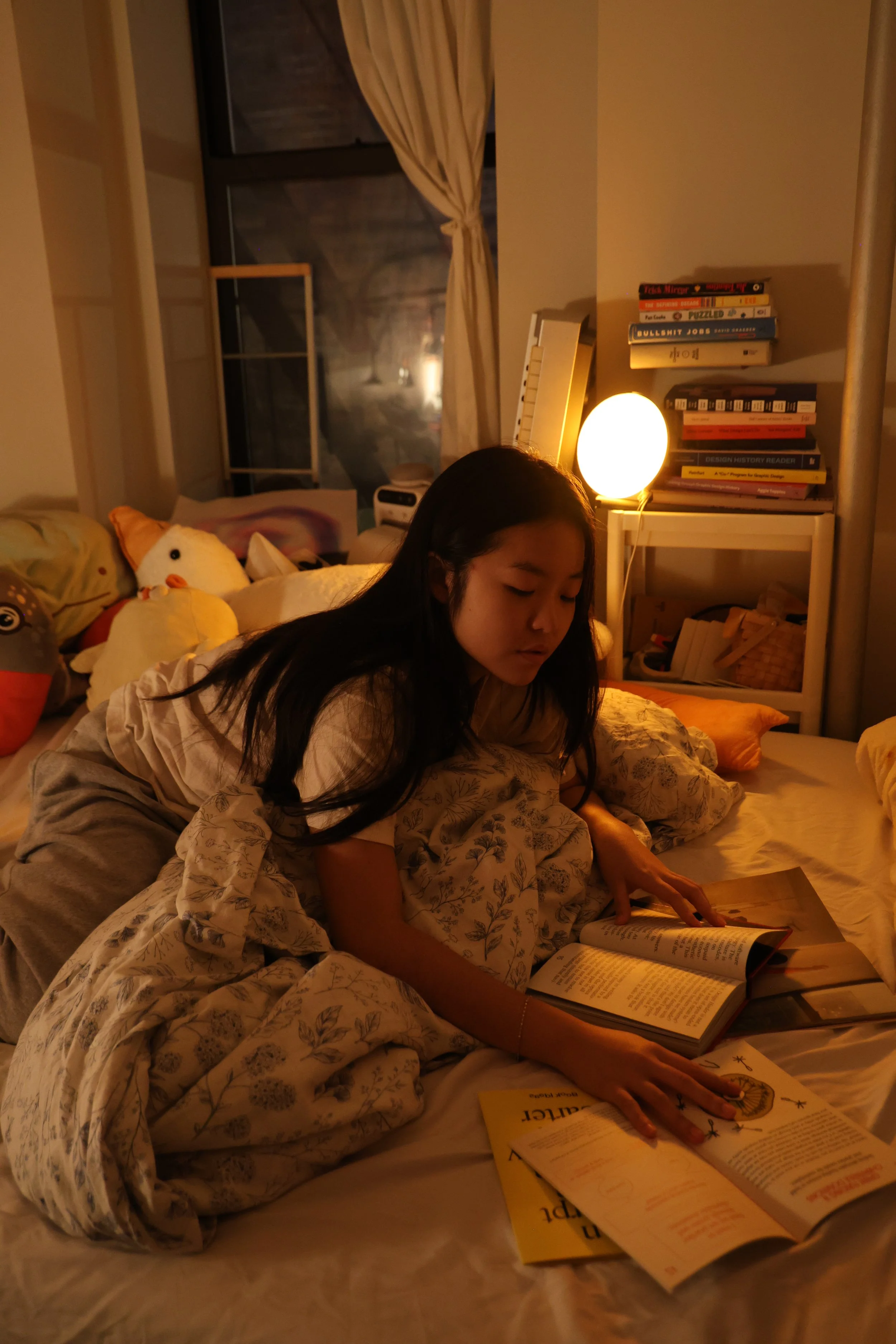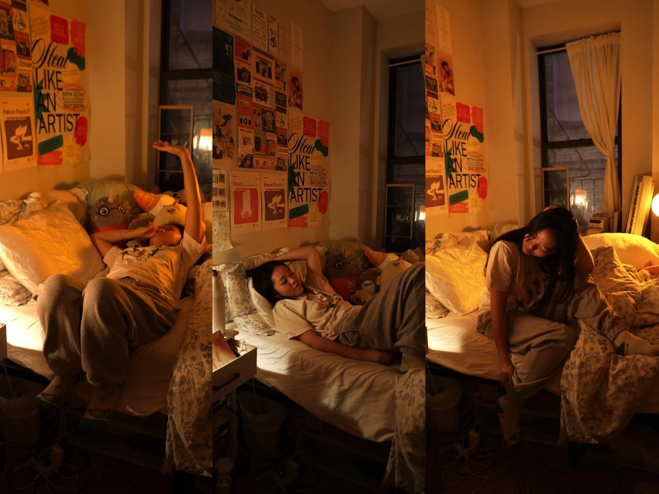The shoot focuses on the quiet atmosphere of her room, using ambient evening light as both a visual element and a concept. Instead of polished presentation or styled poses, the images lean into the everyday rhythm of her routine - the moments that usually go unseen.
